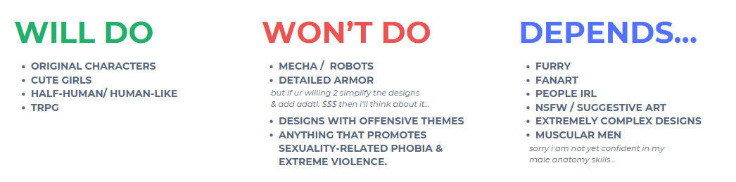 Design Consultation FeeInquiries with characters w/ no existing design (only moodboards or reference stock images) will unfortunately not be accepted under any circumstances.