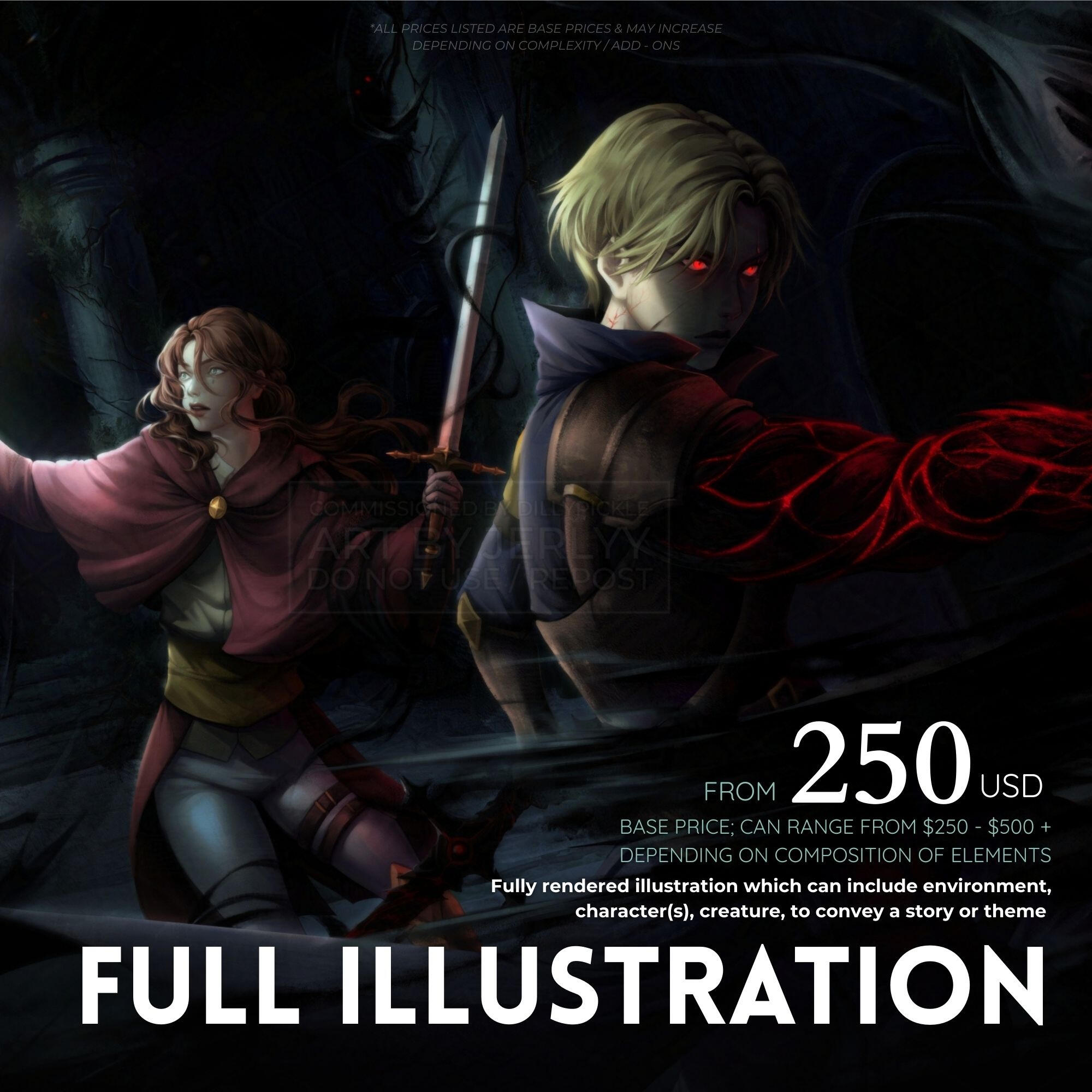+50% of BASE PRICE - illustration works that will be posted on social medias like twitter, instagram, etc. The commission will only be use as online promotional posts for vtubers, VA, etc. This is standard commercial license with non-exclusive rights as the artist retain intellectual property of the commission to also display in their portfolio and social media.